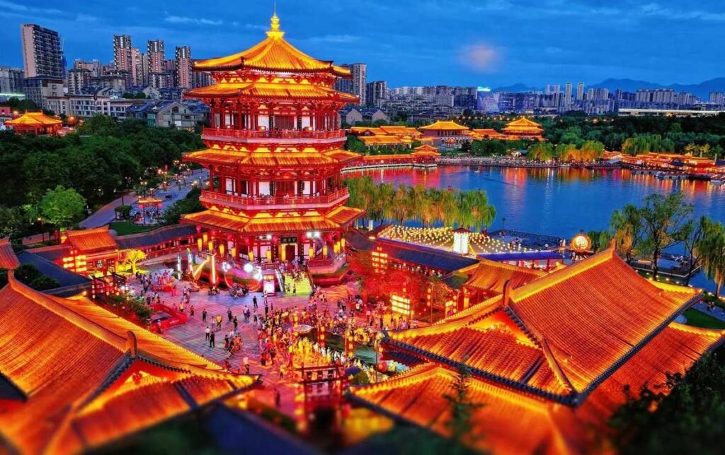 The Tang Paradise is China’s first large-scale royal garden-style park with the theme of the prosperous Tang culture. It covers an area of 1,000 acres, with 30% of the area being water. It was not rebuilt on the original site, but was built in the style of the royal garden of the Tang Dynasty in the north of the Tang Dynasty Paradise. After opening to the public in 2005, it quickly became a cultural landmark in Xi’an. The park restores the prosperous scene of the Tang Dynasty in all aspects through architecture, performances, food and interactive experiences, and is known as the “touchable history of the prosperous Tang Dynasty”.